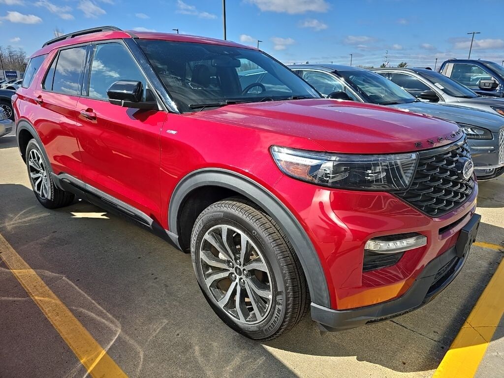 Rapid Red Metallic Tinted Clearcoat 2022 Ford Explorer ST-Line 4WD with Ebony interior - available now at Ford of Peoria in Peoria, IL. This clean AutoCheck one-owner Explorer ST-Line blends sporty styling, turbocharged performance, and three-row versatility with advanced technology and comfort for everyday driving and family adventures.