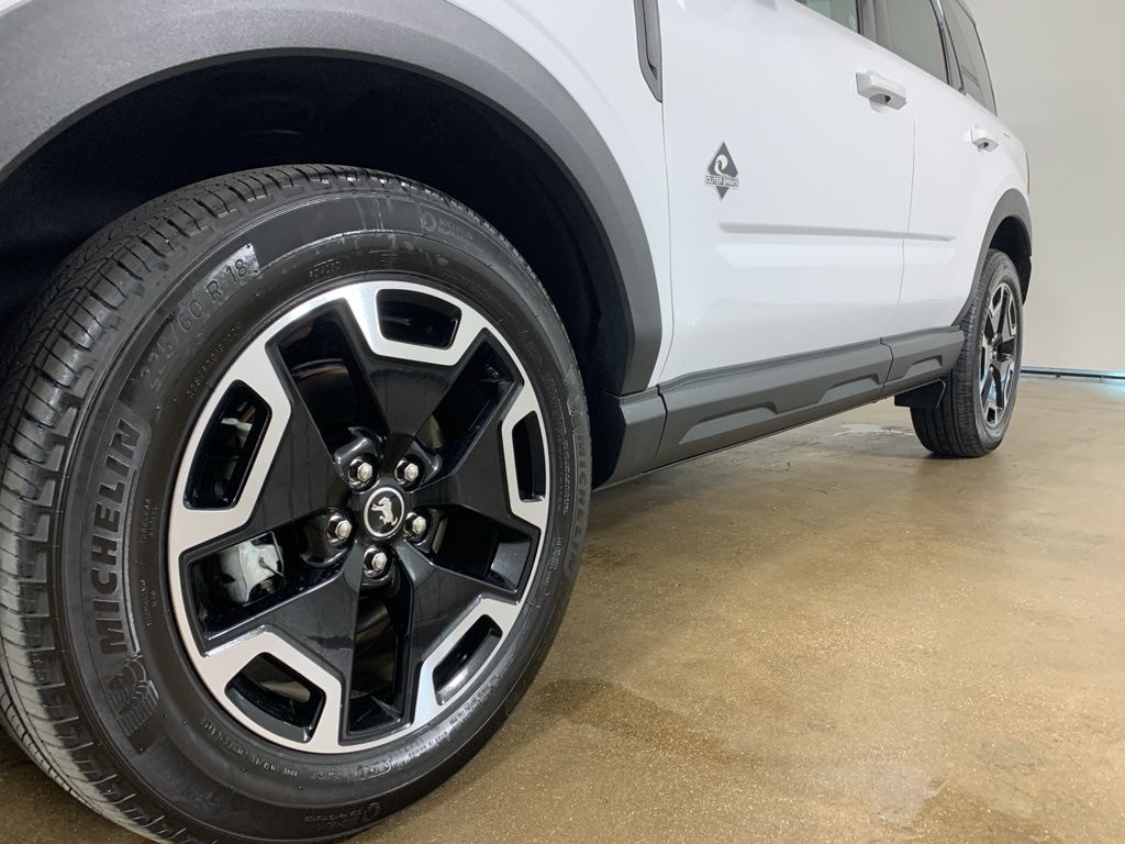 3.80 Axle Ratio, 4-Wheel Disc Brakes, 4G LTE Wi-Fi Hotspot Credit, 6 Speakers, ABS brakes, Air Conditioning, Alloy wheels, AM/FM radio: SiriusXM, AM/FM Stereo, Auto High-beam Headlights, Auto-dimming Rear-View mirror, Automatic temperature control, Brake assist, Cargo Management System, Cargo Mat, Compass, Delay-off headlights, Driver door bin, Driver vanity mirror, Dual front impact airbags, Dual front side impact airbags, Electronic Stability Control, Emergency communication system: SYNC 3 911 Assist, Equipment Group 300A, Evasive Steering Assist, Ford Co-Pilot360 Assist+, Four wheel independent suspension, Front & Rear Floor Liners w/Carpet Mats, Front anti-roll bar, Front Bucket Seats, Front Center Armrest, Front dual zone A/C, Front fog lights, Front License Plate Bracket, Front reading lights, Fully automatic headlights, HD Radio, Heated door mirrors, Heated front seats, Heated steering wheel, Illuminated entry, Intelligent Adaptive Cruise Control w/Stop & Go, Knee airbag, Leather Trimmed Heated Sport Contour Bucket Seats, Low tire pressure warning, Memory seat, Occupant sensing airbag, Outside temperature display, Overhead airbag, Overhead console, Painted Shadow Black Roof, Panic alarm, Passenger door bin, Passenger vanity mirror, Power door mirrors, Power driver seat, Power Moonroof, Power passenger seat, Power steering, Power windows, Radio data system, Rain sensing wipers, Rear anti-roll bar, Rear Parking Sensors, Rear reading lights, Rear seat center armrest, Rear window defroster, Rear window wiper, Remote keyless entry, Security system, SiriusXM, Speed control, Speed-sensing steering, Speed-Sensitive Wipers, Split folding rear seat, Steering wheel mounted audio controls, SYNC 3 Communications & Entertainment System, SYNC 3/Apple CarPlay/Android Auto, Tachometer, Tech Package, Telescoping steering wheel, Tilt steering wheel, Traction control, Trip computer, Universal Garage Door Opener (UGDO), Variably intermittent wipers, Voice-Activated Touchscreen Navigation System, Wheels: 18" Ebony Black-Painted Aluminum, Wireless Charging Pad. Recent Arrival! 2023 Ford Bronco Sport Outer Banks Oxford White