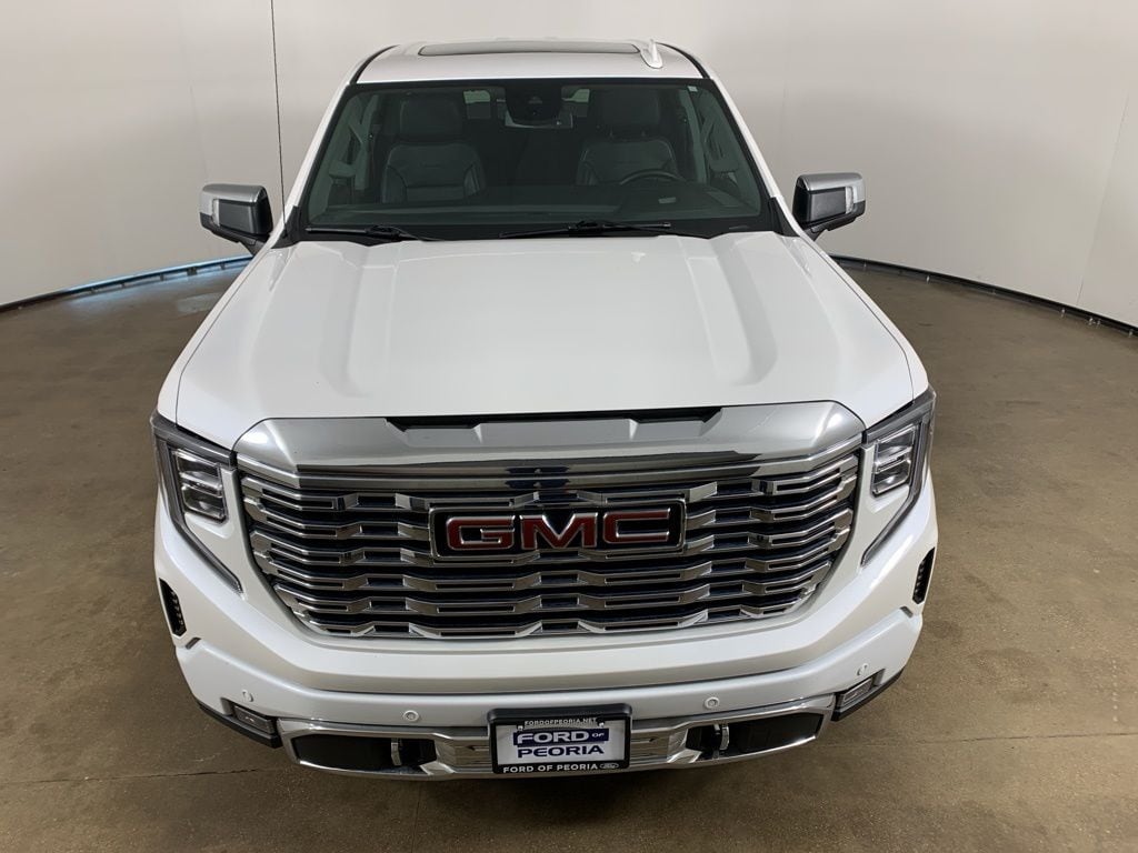 White Frost Tricoat 2023 GMC Sierra 1500 Denali Crew Cab 4WD with Jet Black leather interior - available now at Ford of Peoria in Peoria, IL. This clean AutoCheck GMC Sierra 1500 Denali delivers premium full-size truck capability, refined luxury, and advanced technology, making it an excellent choice for drivers who want strength, comfort, and confidence in one sophisticated package.