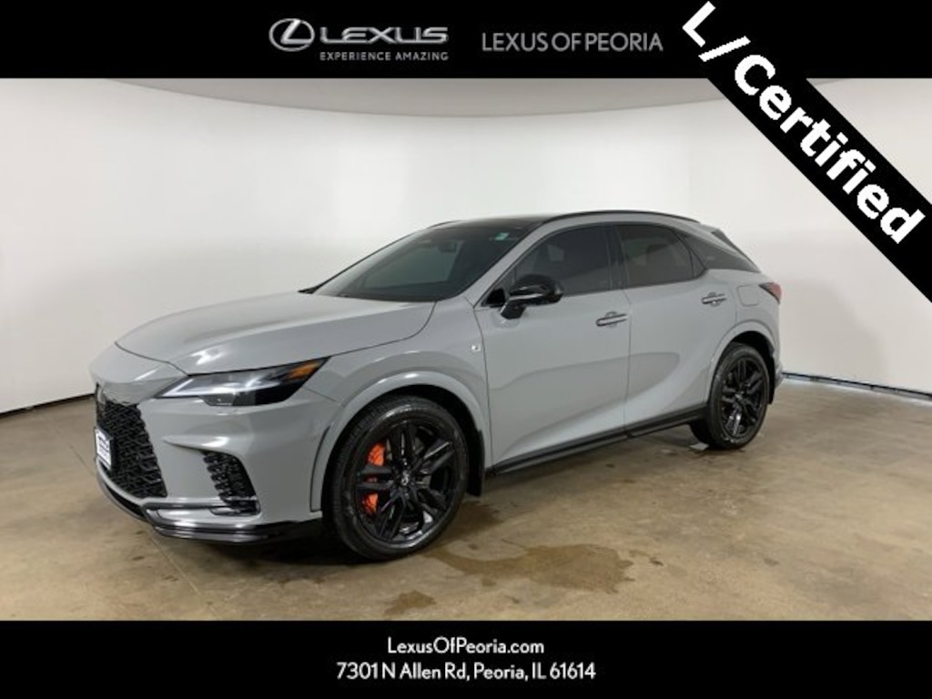 Incognito 2025 Lexus RX 500h F SPORT Performance AWD with Black leather interior - available now at Lexus of Peoria in Peoria, IL. This L/Certified RX 500h is a clean AutoCheck one-owner vehicle that delivers thrilling hybrid performance, advanced technology, and aggressive F SPORT styling, making it one of the most dynamic luxury SUVs in the Lexus lineup.