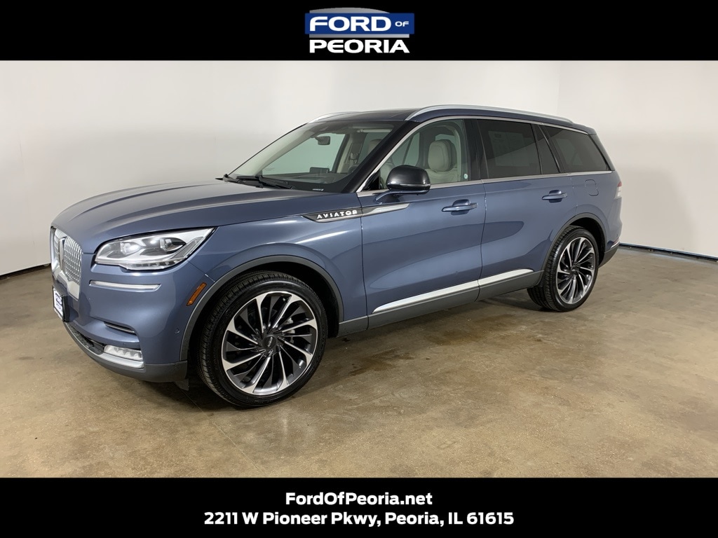 Ocean Drive Blue Metallic 2021 Lincoln Aviator Reserve AWD with Sandstone premium leather interior - available now at Ford of Peoria in Peoria, IL. This AutoCheck one-owner Lincoln Aviator Reserve delivers refined luxury, powerful twin-turbo performance, and advanced technology, making it an exceptional three-row SUV for drivers who want comfort, confidence, and sophistication in every drive.