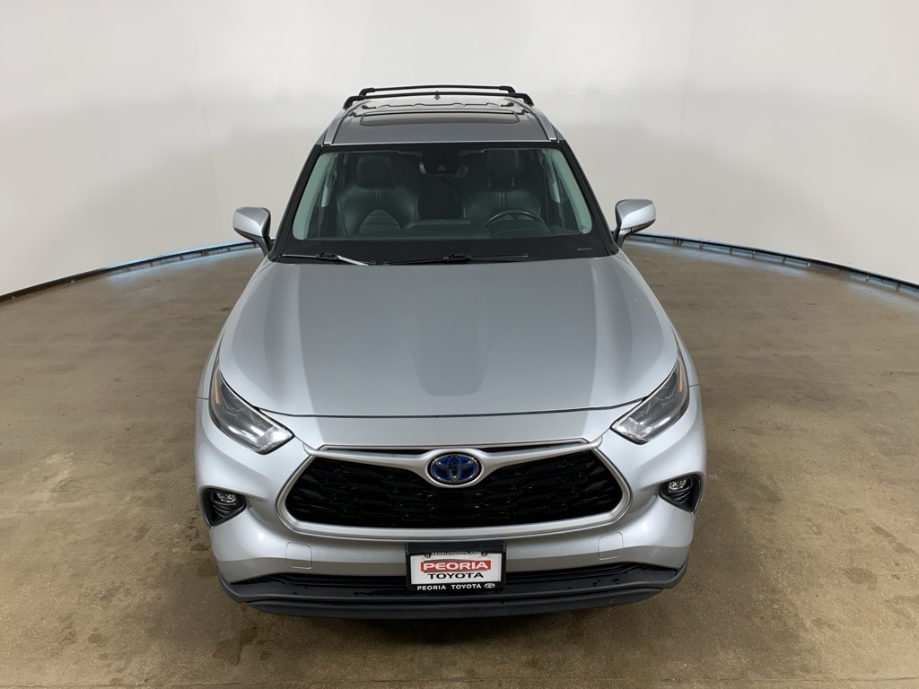 Silver Metallic 2022 Toyota Highlander Hybrid XLE AWD with Black SofTex-trimmed interior - available now at Peoria Toyota in Peoria, IL. This clean AutoCheck three-row SUV blends hybrid efficiency, family-friendly versatility, and upscale comfort. If you're searching for a fuel-efficient midsize SUV with Toyotas legendary reliability, modern technology, and premium features, this used Toyota Highlander Hybrid XLE for sale in Peoria is an exceptional choice.