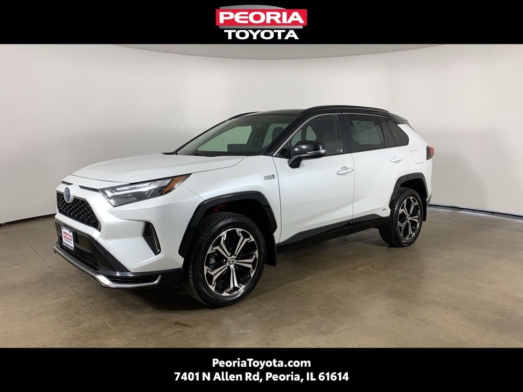 Wind Chill Pearl with Midnight Black Metallic contrasting roof 2023 Toyota RAV4 Prime XSE AWD with Black SofTex interior - available now at Peoria Toyota in Peoria, IL. This clean AutoCheck one-owner 2023 Toyota RAV4 Prime XSE AWD delivers exhilarating plug-in hybrid performance, advanced Toyota Safety Sense 2.5+ technology, and premium interior refinement. Built in Obu, Aichi, Japan, this RAV4 Prime combines impressive all-electric capability with the flexibility of gasoline power for drivers across Central Illinois.